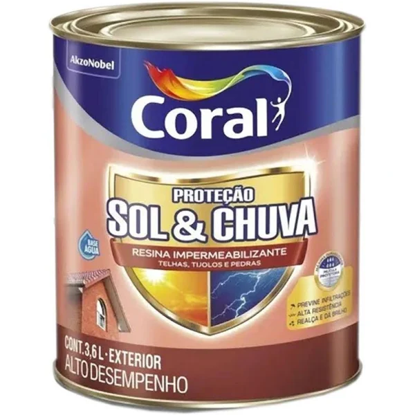 Resina Impermeabilizante Coral para telhados, com acabamento brilhante e alta resistência. Ideal para telhas, concreto e pedras, oferece proteção contra água e fungos.